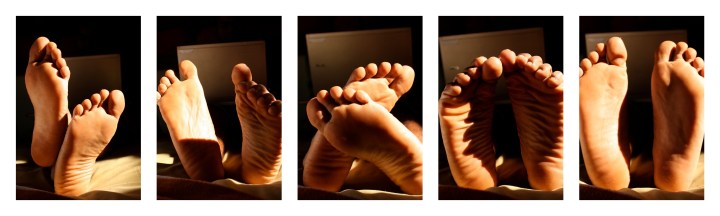 so i had a long drawn conversation with his feet and light. fortunately, his feet were clean.