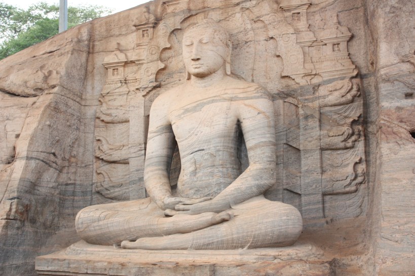 the huge rock-cut statues at gal vihara were beautifully serene and calm-inspiring. with the lines of the different layers of rock running across the faces and bodies of the buddha.