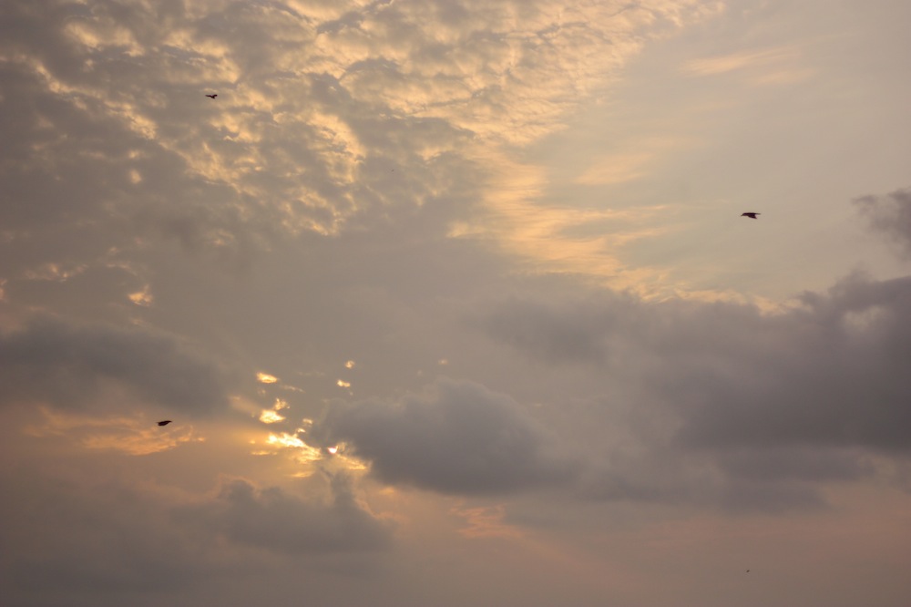 An old man in shorts with his paunch bared to the evening breeze, sitting in an old plastic chair to your right, burps loudly. You look at him, at the garbage and the pigs, then further at the sea beating on the rocks, the setting sun peering through the beautiful cotton clouds heralding the onset of monsoon.