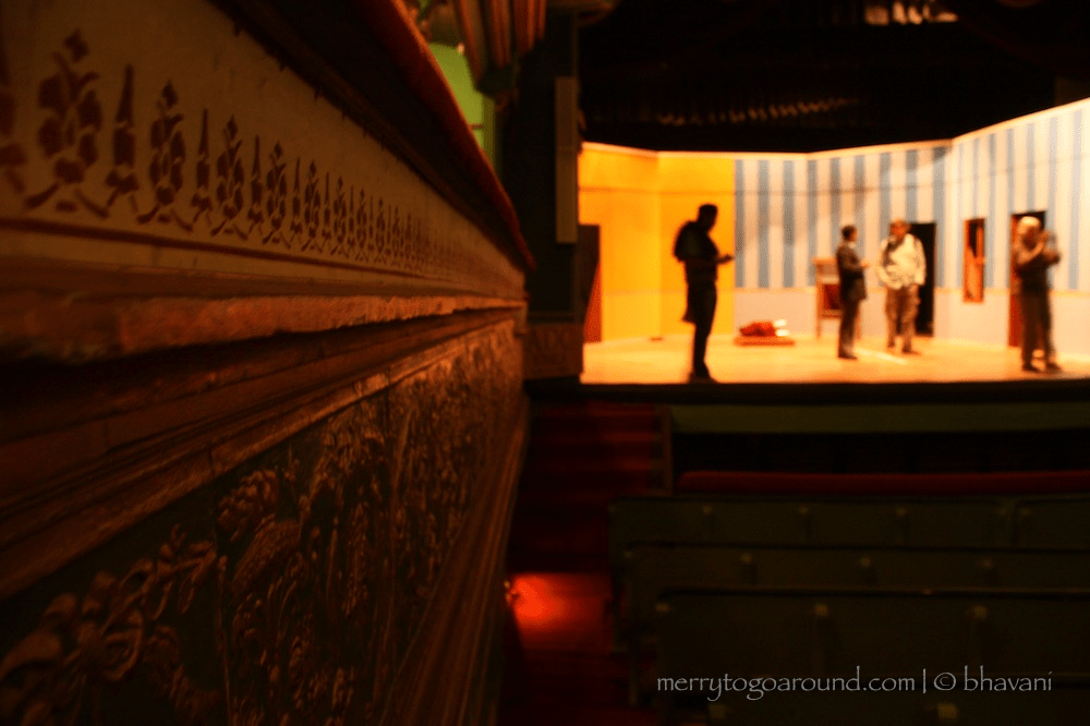 There are panels all along the sides of the seating area. These were made with papier-mache – and looking at the intricate designs you would hardly think it was papier-mache! They were specifically designed to address the acoustics of the theatre. “You don’t need mikes here,” the guide says with great joy! Behind that panel is a 1 foot deep cushion of air, and all these elements help reflect sound. I might not have understood it accurately, but the science behind it sounded marvellous and so sensible.