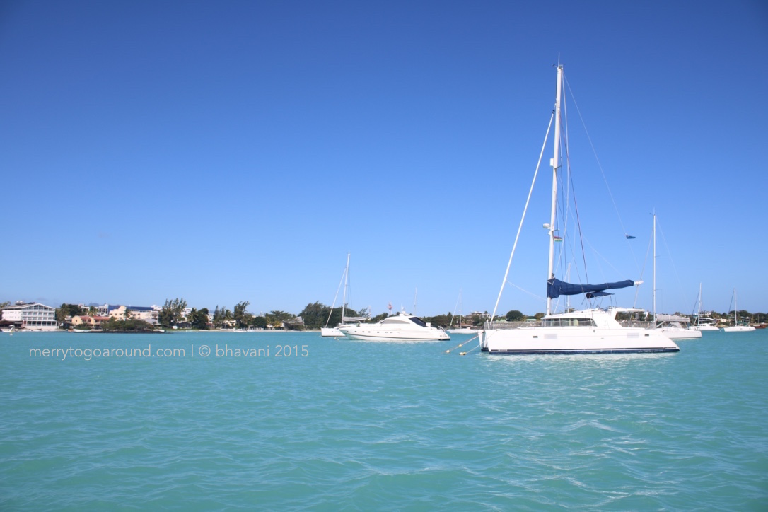 Despite my love for those meandering roads, those brimming sugarcane fields on either sides, and nothing in the distance but the continuing line of black that darted through the green… Despite by love for all that, it is the blue that I have come to associate as the colour of Mauritius. If I close my eyes today, all I see before me are those intermingling shades… that flowing weave that created hues I cannot name. Art class taught me to recognise Sky Blue, Cobalt and Prussian, and somewhere I learnt about Aquamarine, and then, the sea in Mauritius throws up an entire new palette. I felt uneducated about colour when confronted with those blues. Even when we went deep into the sea, we could see far into the water. I mustn’t be partial though for when the sky was grey, the water reflected that desolation too.