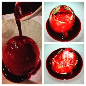 Dinner was lavish and I hadn’t taken my camera along, so the few photos are through my phone and honestly not the best. The starters was Kappa Maki, Vietnamese Rolls, Vegetable Tempura, Vegetable spring rolls. All of this was rolled out onto the table on a large plank that extended from one end of the table to the other. It totally upped the benchmark in my head, and not other restaurant managed to create that effect. Main course was Root Vegetables curry with steamed rice and a stir fried garlic vegetable. Dessert was simply MasterChef styled with “Hot Elixir”. A white chocolate shell was placed in front of me, hot liquid syrup poured over it, and I watched with bated breath as it collapsed in the centre and unveiled the shimmering jelly in the centre. Brilliant! Didn’t take my camera along and the light was too dim for great snaps on the phone. Mind you, all that I mentioned above, was just the vegetarian menu! I needed to be taken back to my room on a stretcher! Got my digestion wheels moving by a walk around the property.