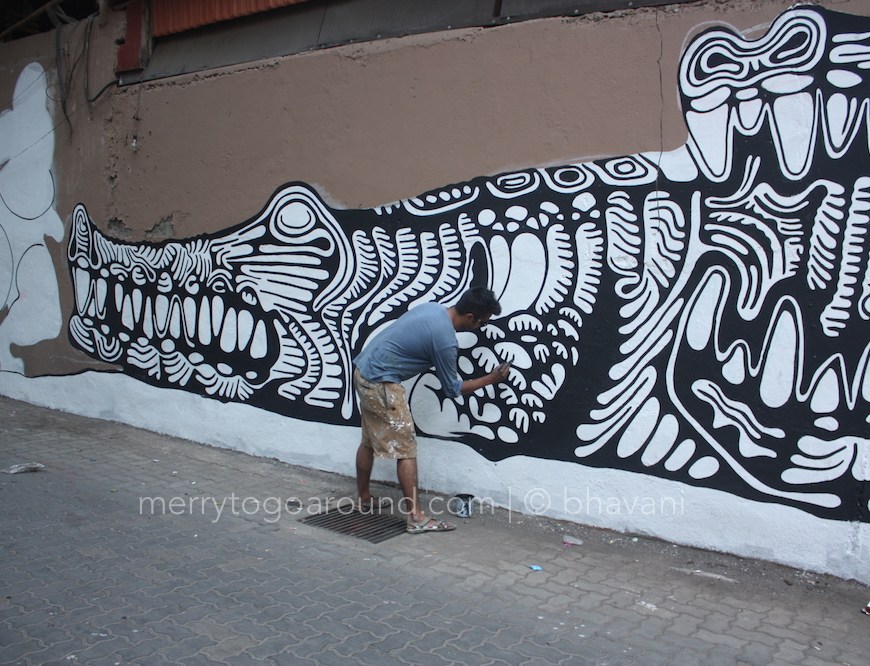 This Sunday, after having seen multiple updates on St. Art Delhi’s Facebook page, I decided to go and check out the latest art that was dotting walls across Mumbai. If you’ve read my previous pieces you will know that graffiti and me have a strong relationship, of course, it’s one sided for now! Read more here. At the entrance to Pali Village is this black and white large … Continue reading the graffiti festival mumbai!
